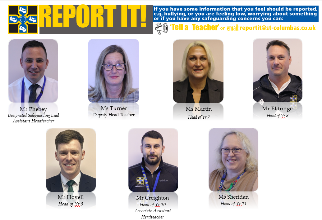 If you have a concern that a young person is being harmed, is at risk of harm, or you receive a disclosure then please contact St Columba's Designated Safeguarding Leads at Safeguarding@st-columbas.bexley.sch.uk